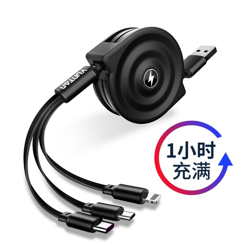 国产 手机伸缩数据线1.2米 一拖三